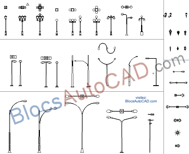 30 haute qualité autocad lampadaires, extérieur eclairage, rue & chaussée Luminaires, extérieur espace & Site lumière (Blocs autocad dwg)